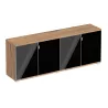Latéraux en mélamine de 19 mm, chant de 2 mm ABS sur tout le contour. Finitions en acacia clair, acacia foncé, blanc, chêne veiné, chêne grisé et noir.