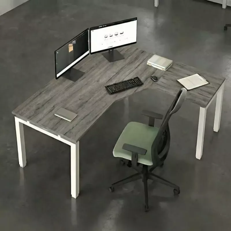 Compléments : plateaux retour, exécutif, angles, demi-rond et semi-elliptiques, fabriqués en mélaminé de 25 mm chants en ABS de 2mm. Finitions en graphite, blanc, gris, hêtre, chêne, poirier, wengué, acacia clair, acacia foncé, chêne veiné, chêne grisé et noir. Optionnel, fabrication en panneau stratifié. Fixés au plateau principal à l’aide de platines métalliques.