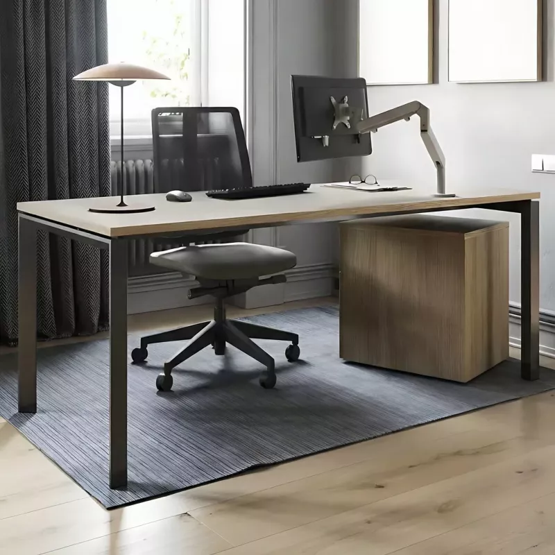 Pour bureaux individuels. Fixation à la structure de la table avec des équerres en acier peintes en peinture époxy argent (RAL 9006), blanc (RAL 9016), graphite (RAL 7022) ou noir (RAL 9005).