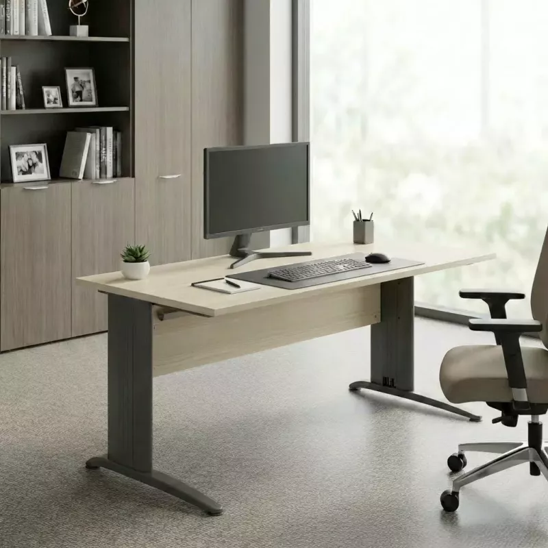 En mélaminé fabriqués en panneau aggloméré de particules de 19 mm d’épaisseur. Chant de 0,8 mm en PVC sur tout le périmètre. Fixation aux plateaux avec Vis M6. Finitions : Graphite, Blanc, Gris, Hêtre, Chêne Moyen, Poirier, Wengué, Acacia clair, Acacia foncé, Chêne Veiné, Chêne Grisé et Noir.
