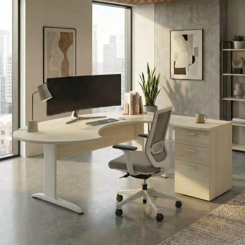 Ce bureau professionnel est parfaitement conçu pour vous! Il est compact et a une structure métallique. Son design en forme d'arc offre à l’utilisateur beaucoup d'espace et un caisson de hauteur bureau. Optimisez votre espace de travail et travaillez dans le confort!