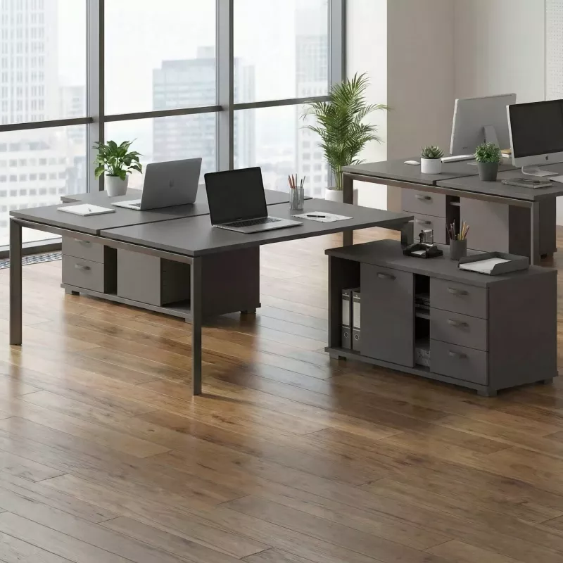 Bureau professionel : Optez pour une solution complète et élégante avec ce bench vis-à-vis de 2 postes accompagné de 2 crédences assorties. Idéal pour un espace de travail aménagé et fonctionnel.