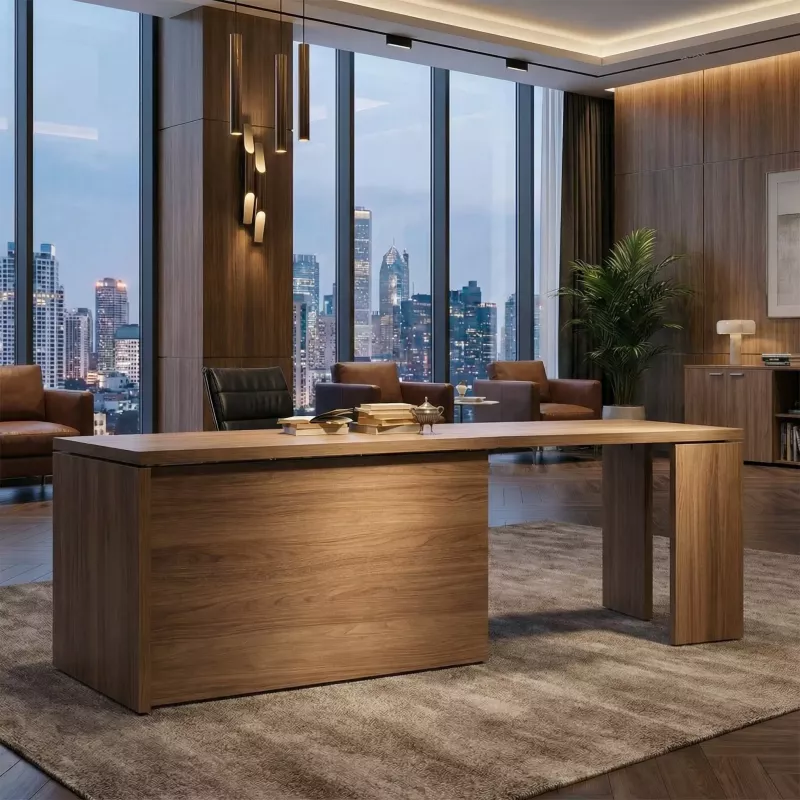 Découvrez la Collection de bureaux de direction So Terra, un mobilier directionnel pour bureau en mélaminé d'épaisseur 40 mm, alliant solidité, élégance et modularité. Choisissez parmi trois couleurs de base : Chêne Foncé, Noyer Naturel, et Blanc, que vous pouvez combiner pour créer une gamme variée. Les tables de bureau sont disponibles en deux dimensions : 190 x 90 cm et 220 x 90 cm, avec une hauteur de 75 cm. Personnalisez votre espace de travail avec différentes combinaisons de couleurs, des rallonges latérales et frontales, et des meubles de service intégrés. La collection So Terra allie fonctionnalité et design pour répondre aux besoins des utilisateurs exigeants.