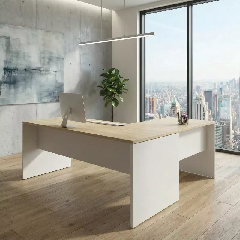 Ce bureau droit professionnel vous offre un design simplifié, des finitions de qualité et la possibilité de le configurer selon vos gôuts. Pour bénéficier de plus d'efficacité et d'aisance, So Denia est doté d’un retour secrétaire. Équipez votre poste de travail avec ce modèle et vous aurez le meilleur du mobilier de bureau, à un prix très abordable !