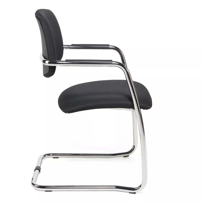 Ce fauteuil d'accueil allie design moderne et fonctionnalité. Sa structure en chrome assure une grande robustesse, tandis que l'assise et le dossier sont intégralement tapissés en tissu de type K pour un confort optimal.