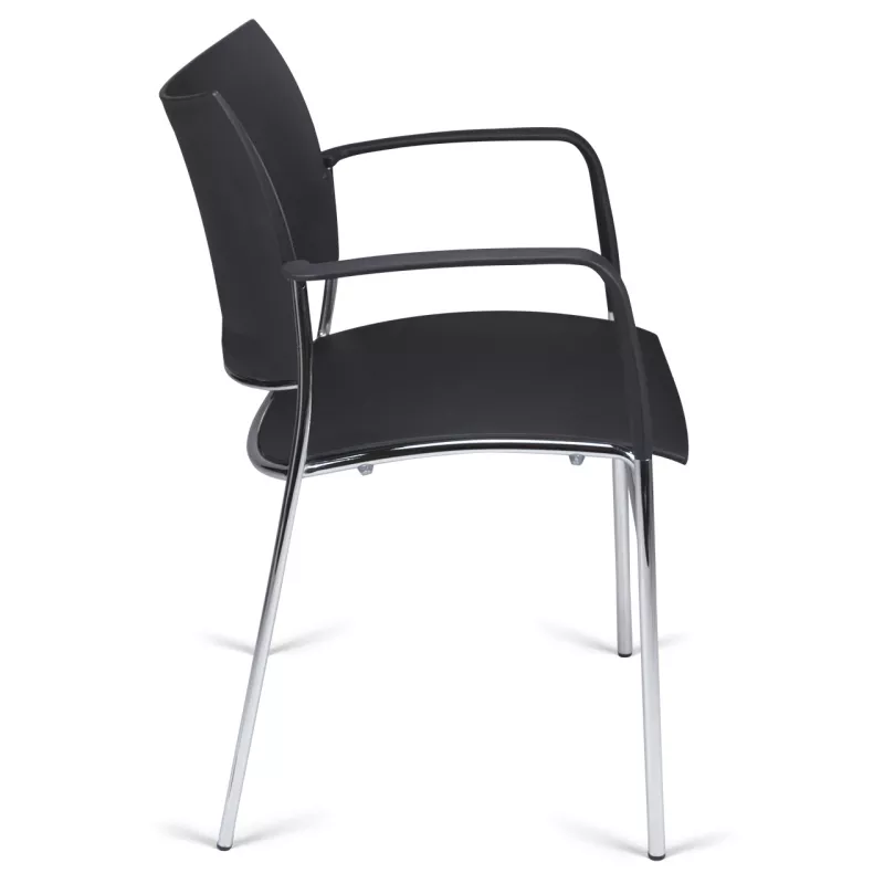 Optez pour ce fauteuil accueil So Casoria empilable, alliant une structure en acier chromé et une assise en polypropylène noir avec accoudoirs. Robuste et fonctionnel, ce fauteuil visiteur supporte un poids recommandé de 140 à 150 kg pour un confort durable.