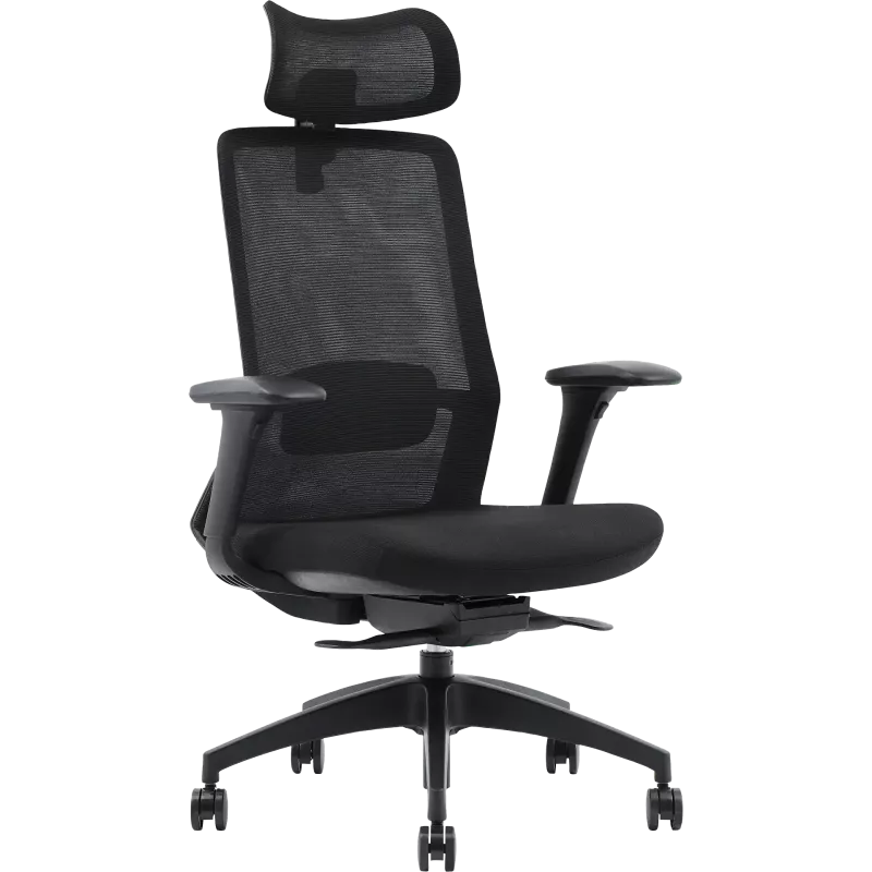 Dossier en maille tendue sur un cadre en nylon, avec soutien lombaire réglable en hauteur.