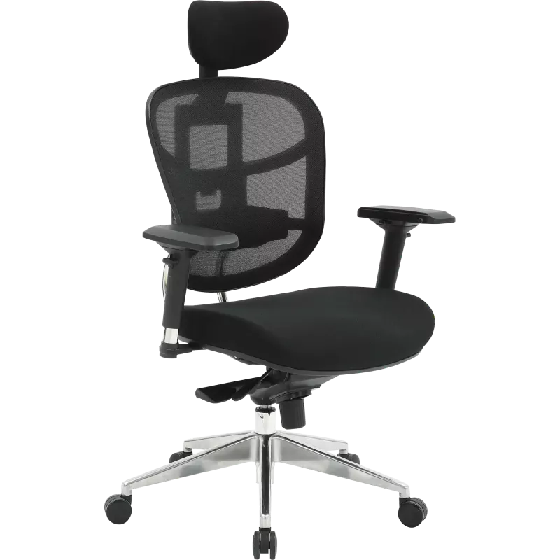 - Soutien lombaire : réglable en hauteur, en mousse recouvert de maille, fixé sur support en polyuréthane, hauteur à partir de l'assise 170 à 280 mm