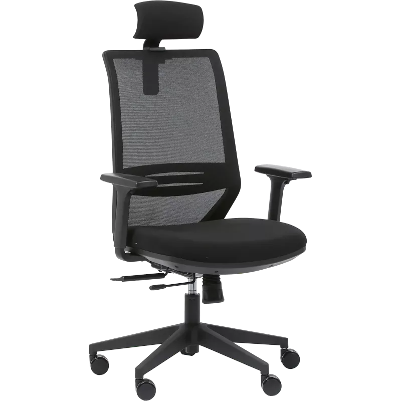 Le fauteuil de bureau synchrone So Elite offre un confort optimal pour plus de 7h d'utilisation. Il dispose d'une assise en laine haute densité, d'un dossier en maille avec soutien lombaire réglable et d'un appui-tête ergonomique, garantissant robustesse et ergonomie certifiée EN 1335.