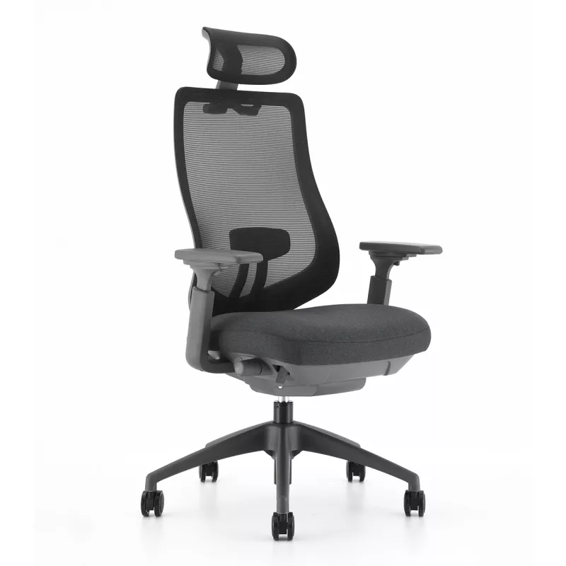 Ce fauteuil de bureau ergonomique dispose d'un mécanisme synchrone performant, permettant un blocage sur 4 positions et un ajustement personnalisé de la tension. Conçu pour offrir un confort durable, il intègre une assise en mousse injectée revêtue d'un tissu Gabriel gris anthracite et un dossier en résille premium noire.