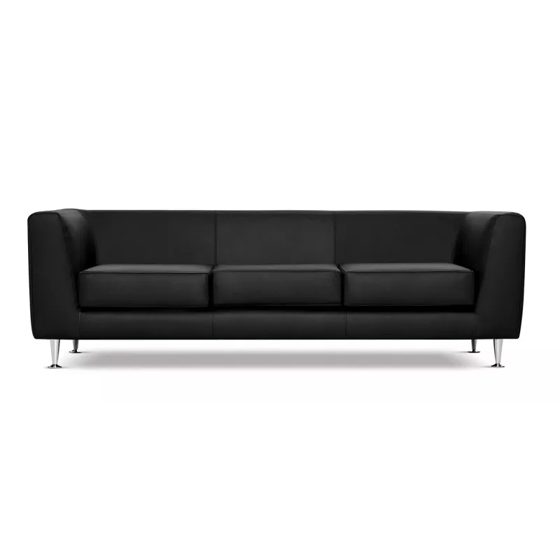 Optez pour le confort du canapé d'accueil 3 places So Gubbio. Conçu en croûte de cuir noir élégante et robuste, il repose sur des pieds en acier chromé pour un style moderne. Un choix idéal pour aménager vos espaces professionnels avec élégance.