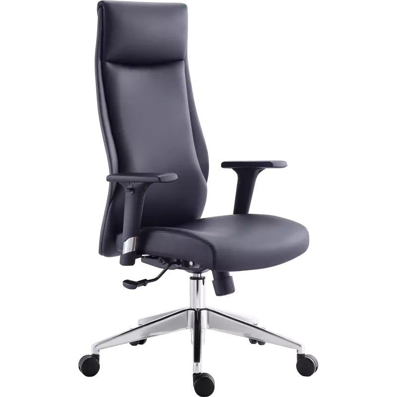 Siège équipé d’un dossier et d’une assise en mousse collée sur support bois, avec revêtement polyuréthane. Le mécanisme synchrone est blocable sur 4 positions avec réglage de la tension de bascule. Accoudoirs réglables en hauteur, vérin à gaz classe 3, piétement aluminium et roulettes adaptées aux sols durs.
