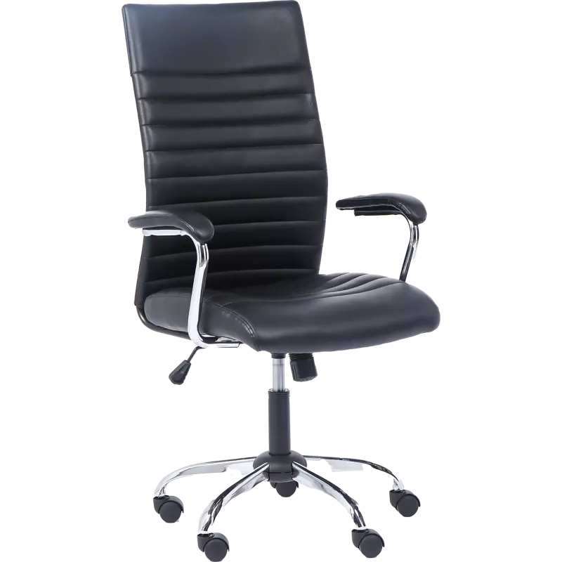 Ce fauteuil de bureau vintage en polyuréthane allie élégance et confort avec son mécanisme de basculement centré et ses finitions chromées. Conçu pour un usage quotidien de 4 à 6 heures, il supporte jusqu'à 90 kg et dispose d'une assise dense de 24 kg/m³ garantie 2 ans.