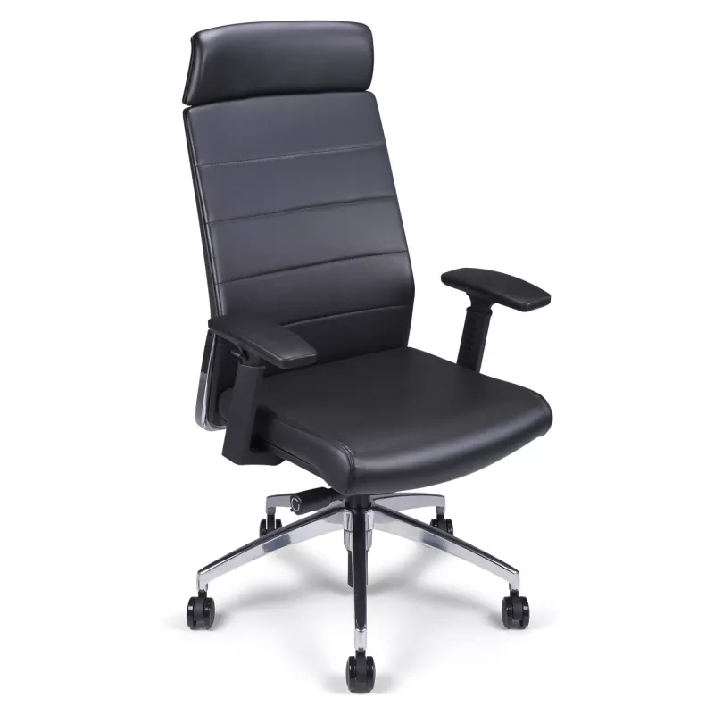 Le Fauteuil de Direction synchrone So Tarente en PU façon cuir noir offre un mécanisme à commandes latérales, une translation d’assise et des accoudoirs 3D. Il dispose d'un soutien lombaire réglable et d'une base en aluminium poli avec roues bandage PU de 60 mm.