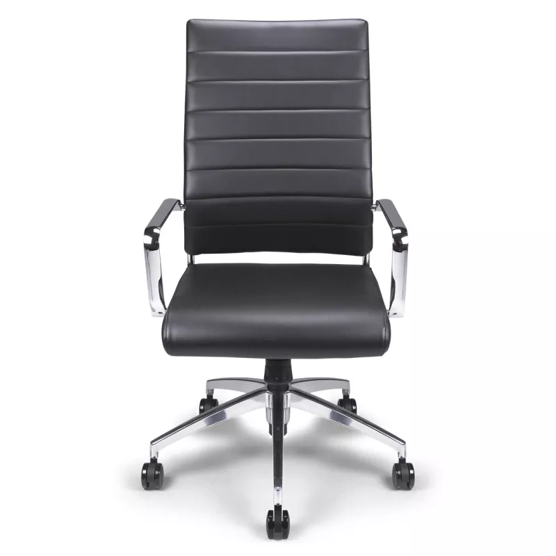 Ce fauteuil manager haut de gamme allie confort et esthétique professionnelle. Conçu avec un revêtement en polyuréthane (PU) façon cuir noir, il repose sur une structure robuste et élégante en aluminium poli.
