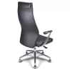 Fauteuil de Direction synchrone - cuir Noir pleine fleur - accoudoirs en aluminium poli - So Pérouse