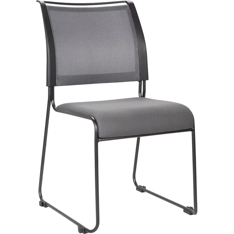 Chaise visiteur ou de réunion dotée d’un dossier en maille et d’une assise en tissu, conçue pour un usage professionnel régulier.