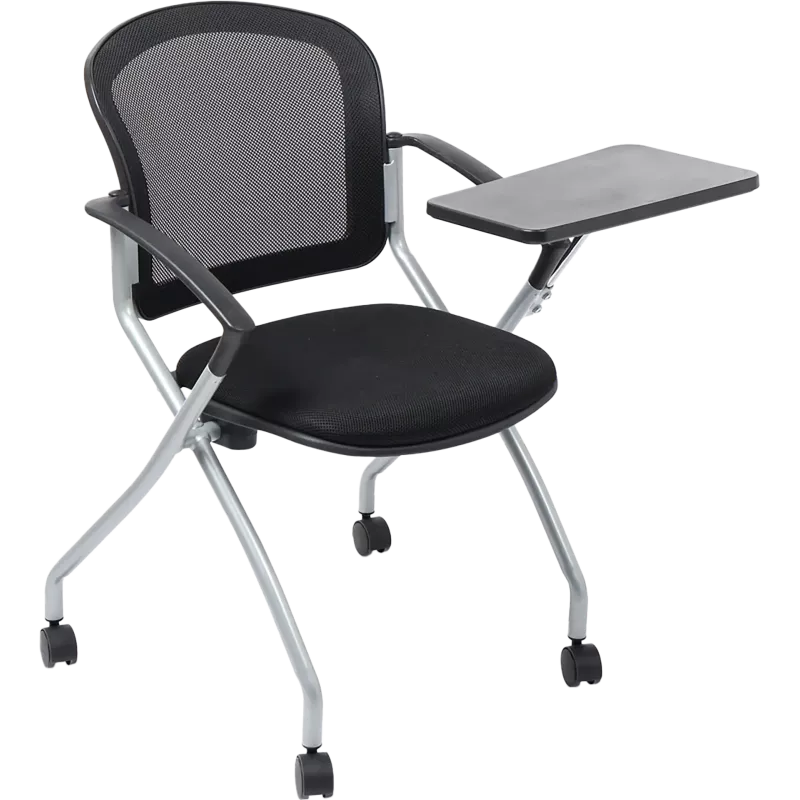 Optimisez votre espace avec cette chaise de réunion à assise rabattable et dossier en maille ergonomique. Équipée de roulettes et d'un piétement en acier chromé, elle offre confort et mobilité pour une utilisation quotidienne de 5h à 7h. Disponible en plusieurs coloris.