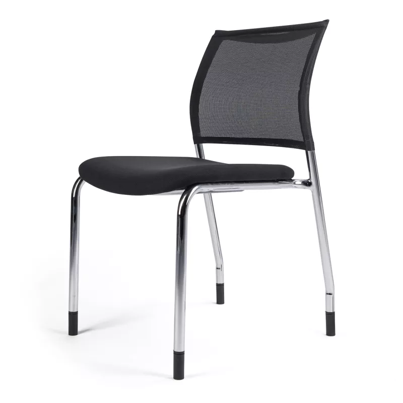 Cette chaise de réunion allie robustesse et confort pour vos espaces professionnels. Sa structure est conçue en acier chromé montée sur des patins protecteurs, garantissant une excellente stabilité. Pour assurer un confort optimal, l'assise est généreusement garnie de tissu tandis que le dossier est réalisé en résille noire, favorisant la circulation de l'air.