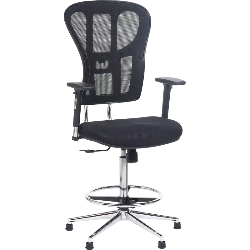 Ce siège technique haut So Canvas allie ergonomie et robustesse. Il dispose d'une assise en mousse haute densité, d'un dossier en maille respirante et d'accoudoirs 3D réglables. Son piètement en acier chromé avec repose-pieds assure un confort optimal pour une utilisation quotidienne de 4 à 6 heures.