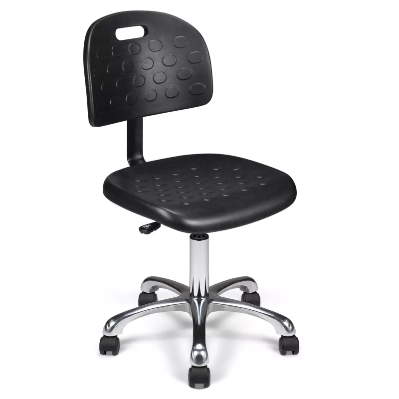 Le siège technique So Latina dispose d'une assise et d'un dossier en polyuréthane noir haute densité sur une base en aluminium poli. Il est équipé d'un vérin pneumatique de 235 mm et d'une liaison par lame acier époxy, garantissant robustesse et confort ergonomique.