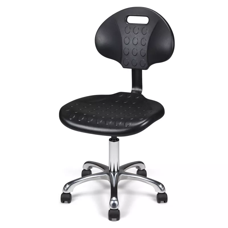 Le siège technique So Bergame dispose d'une assise et d'un dossier en polyuréthane haute densité reliés par une lame d'acier. Il est équipé d'un vérin pneumatique de 235 mm et d'une base robuste en aluminium poli de 640 mm de diamètre.
