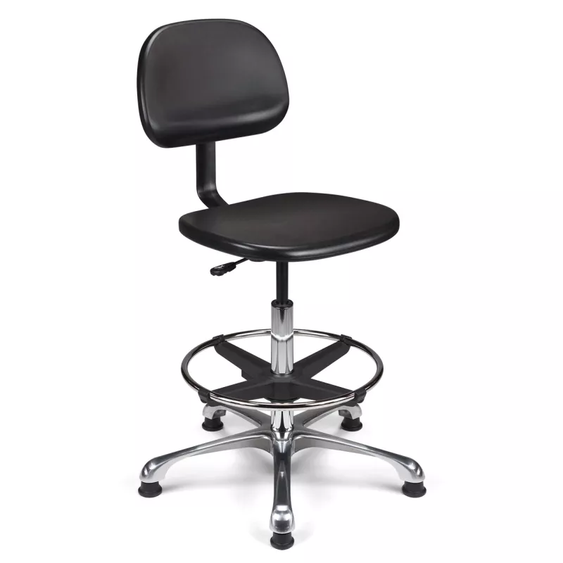 Le siège technique So Forlì offre une assise et un dossier en polyuréthane haute densité. Il dispose d'un vérin pneumatique de 375 mm, d'une base en aluminium poli et d'un repose-pieds en acier réglable, garantissant robustesse et confort pour vos environnements de travail.