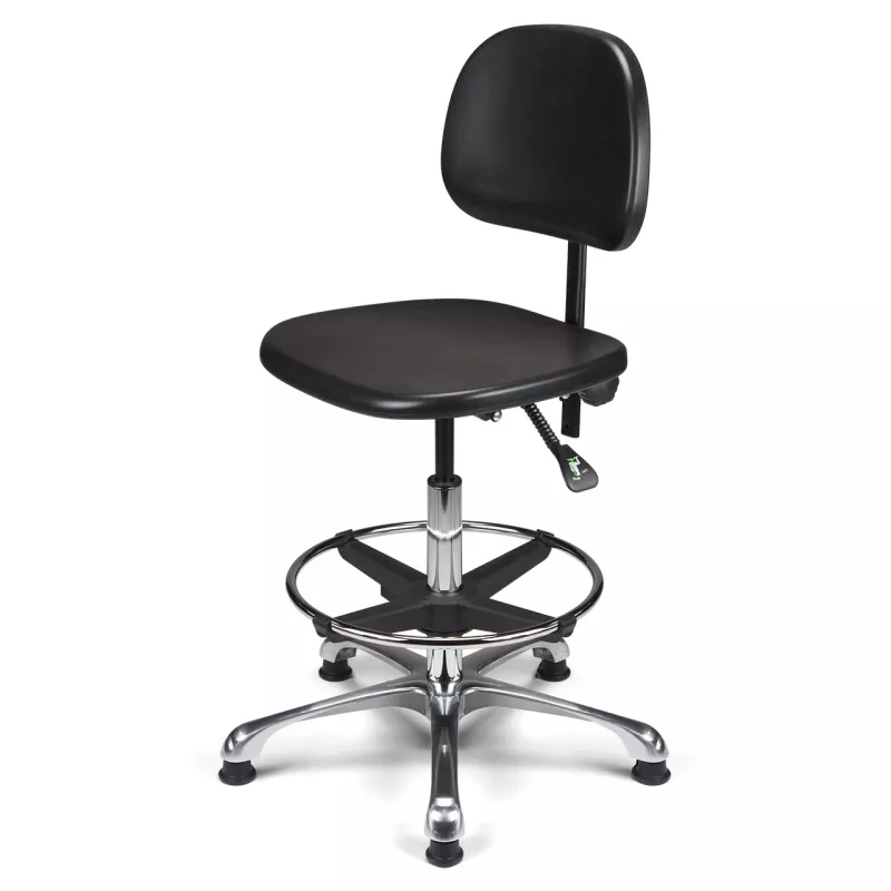 Ce siège technique est conçu pour offrir une ergonomie optimale grâce à son assise et son dossier en polyuréthane noir haute densité. Équipé d'un vérin pneumatique de 375 mm, il repose sur une base robuste en aluminium poli de 640 mm de diamètre.