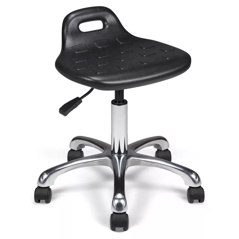 Le So Andria est un siège technique ergonomique doté d'une assise en polyuréthane noir haute densité avec dossier intégré. Il repose sur une base en aluminium poli de 540 mm et dispose d'un vérin pneumatique de 305 mm pour un réglage précis.