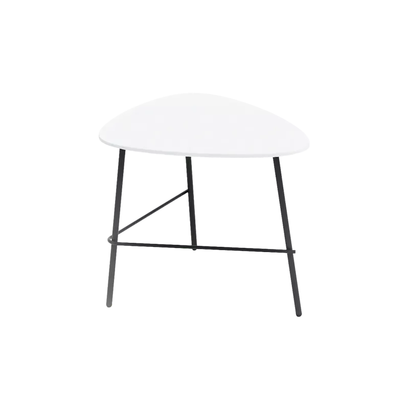 Table basse avec plateau en MDF finition stratifié HPL et piètement métallique en tube d’acier peint en noir. Deux dimensions de plateau sont proposées selon la variante.