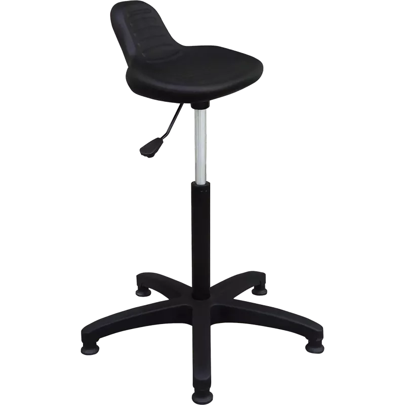 Tabouret « assis-debout » conçu pour un usage professionnel, avec réglage en hauteur et une structure en polyuréthane injecté.